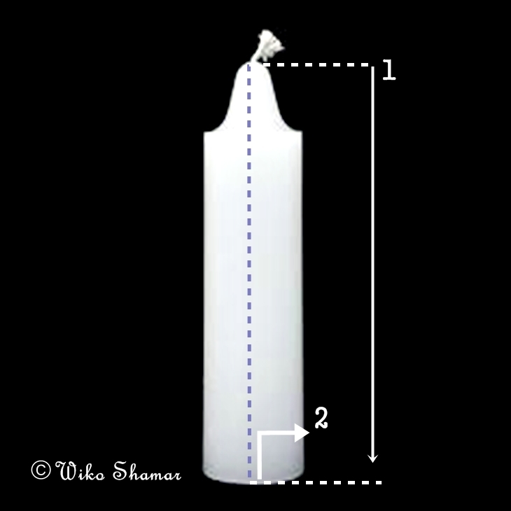 .Si se trata de velas o velones de altar,para las deidades,ofrendas o zodiacales, frotaremos el aceite en la vela (1) con un movimiento descendente desde la parte superior de la vela hasta la mitad,(2) luego desde la parte inferior de la vela hasta la mitad,despues la giraremos un poco en "sentido horario" (hacia nosotros),y volveremos a repetir todo en el siguiente tramo de vela,justo seguido al que ya hemos ungido (3).